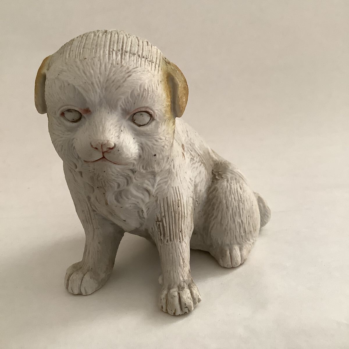 - 白犬 水差し 陶器製 アンティーク オブジェ 置物 時代物 犬