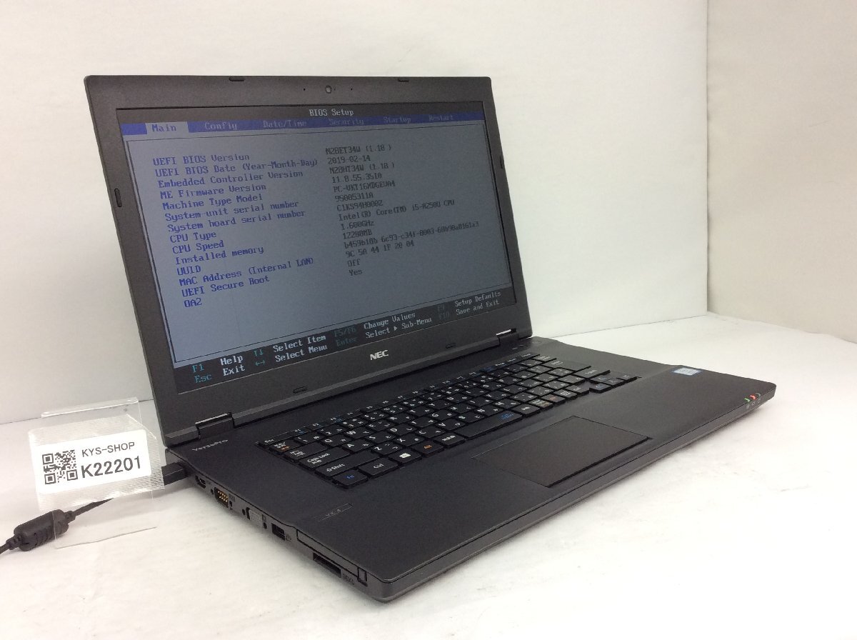 > ジャンク/ NEC PC-VKT16XDGEVA4 Intel Core i5-8250U メモリ12.29GB ストレージ無し 【K22201】