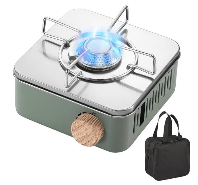 > ミニカセットコンロ アウトドア 小型 超軽量ポータブル カセットコンロ 一台二役 強火力 速加熱ヒーター 電源不要 卓上コンロ グリーン