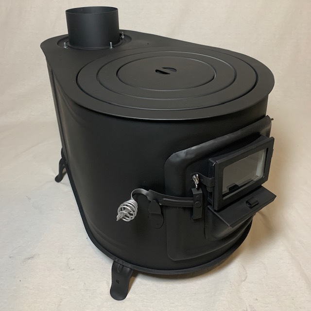 - 【新品】新保製作所//タマゴ型薪ストーブ煙突上出し♪可愛く小ぶりだが40センチの薪が入る!