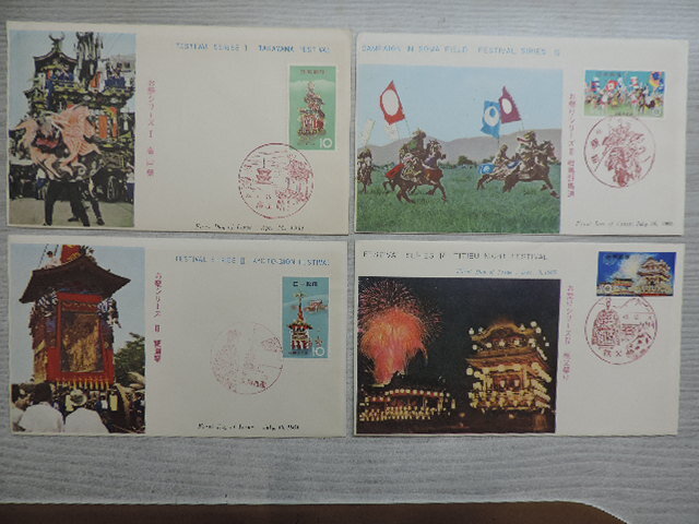- ★日本、お祭りシリーズ 4種完★ 初日カバー 昭和39年、40年 10円切手×4枚 ー郵便文化部発行ー