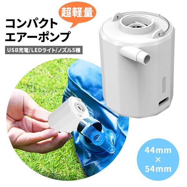 - 送料無料 超軽量 コンパクト エアーポンプ 電動 空気入れ 小型 エアポンプ USB充電 ノズル5種 USB充電 LED 浮き輪 プール 海 ビーチ 水遊