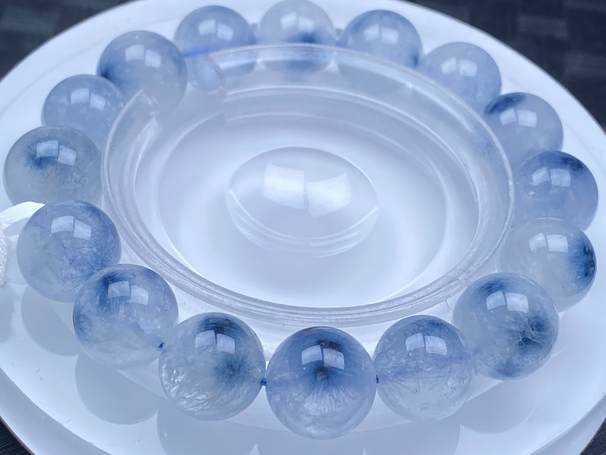 - 即決 0619a039 天然石★【30Aブルーフラワートルマリンインクォーツ】★ブレス 13-13.9mm(新品)