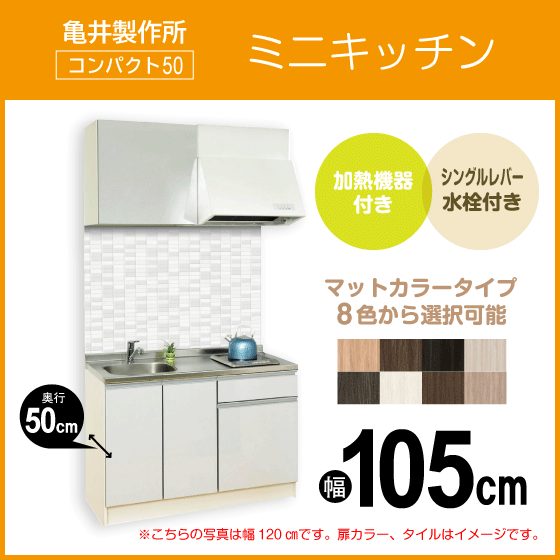 > ミニキッチン コンパクト50(扉カラー:マット) 間口105cm フルタイプ SS105FJTK2R,SS105FJTK2L 亀井製作所 1,050mm