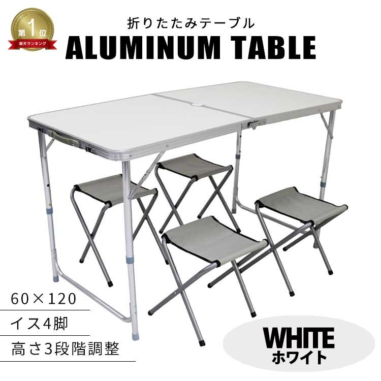 - 折りたたみアルミテーブル アウトドアテーブル 120×60cm 高さ3段階 チェア4脚セット 軽量 レジャー BBQ キャンプ ピクニック mermont
