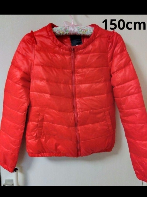 > キッズ女の子赤いキルティングダウンコート /ダウンジャケット150cm