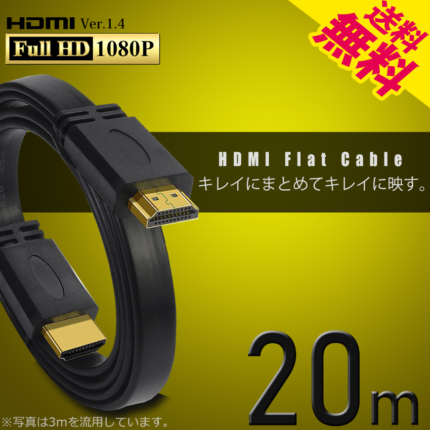 - HDMIケーブル フラット 20m 薄型 平型 Ver1.4 FullHD 3D フルハイビジョン ネコポス* 送料無料