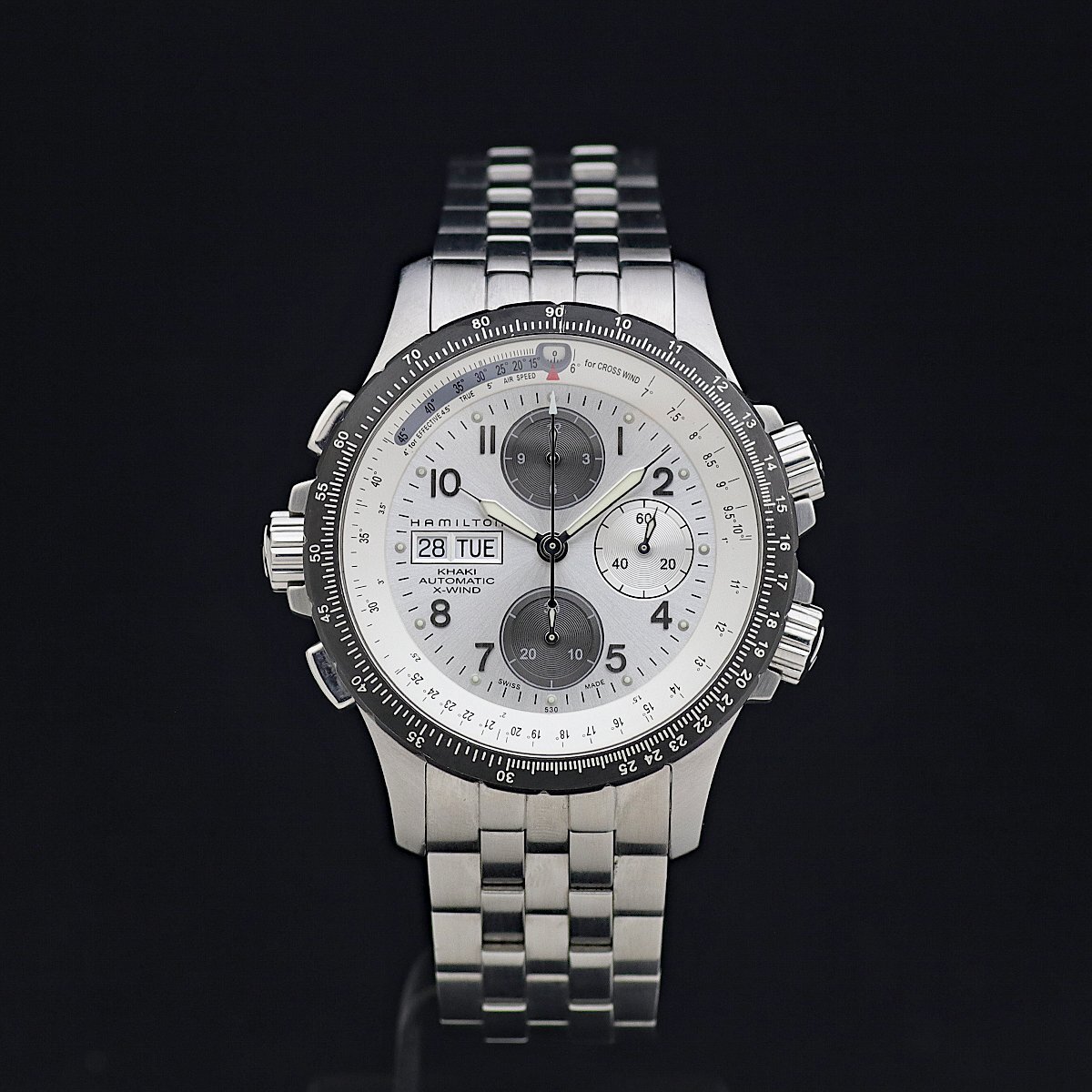 > 1円~ 美品 日差良好 HAMILTON ハミルトン カーキアビエーション X Wind H77626153 H776260 SS 自動巻 シルバー文字盤 箱保取 定価20.3万