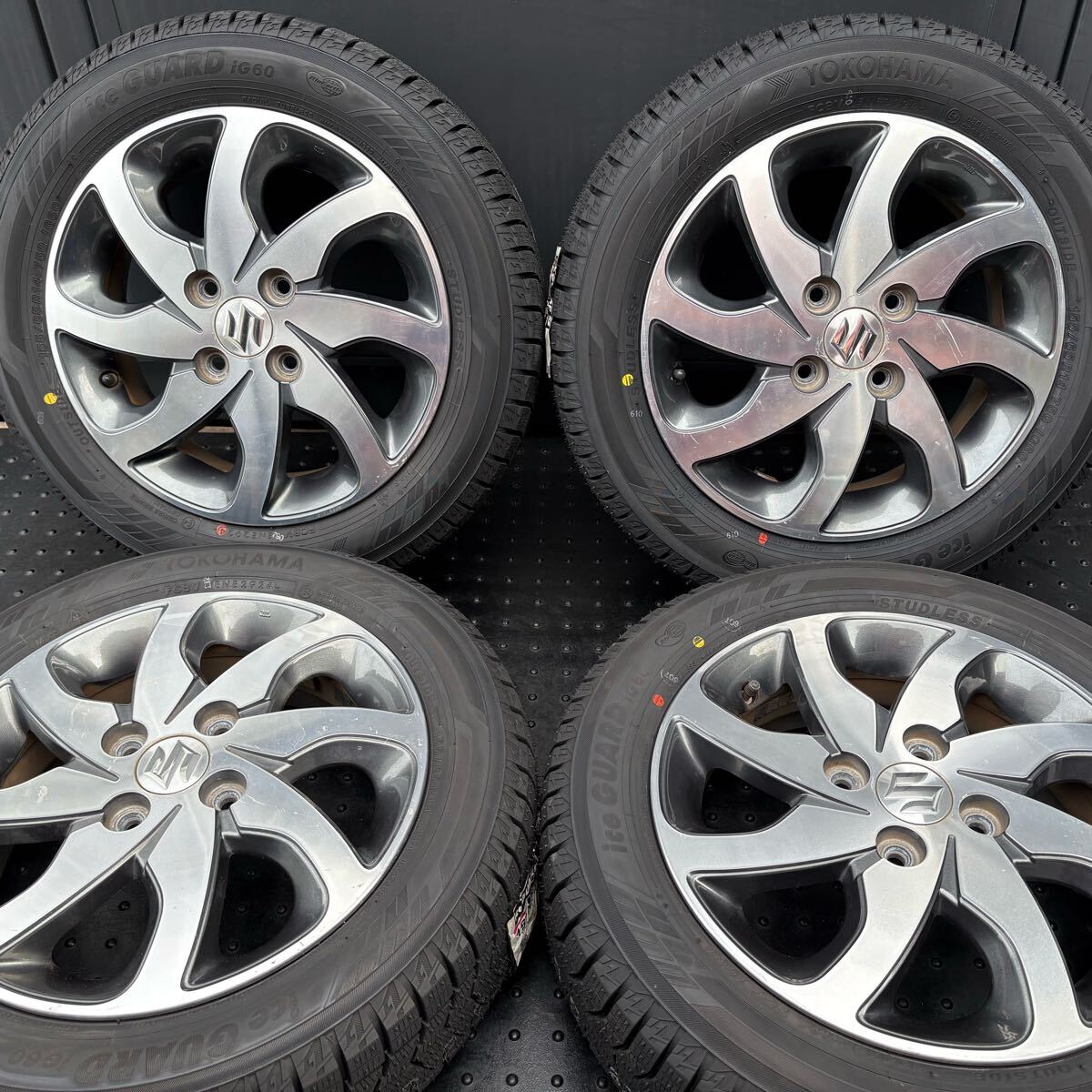 > スズキ純正 新品タイヤ!155/65R14 75Q 2024年製 ヨコハマ YOKOHAMA iceGUARD iG60 中古ホイール冬4本セット、14X4.5J 100-4H +50 S11