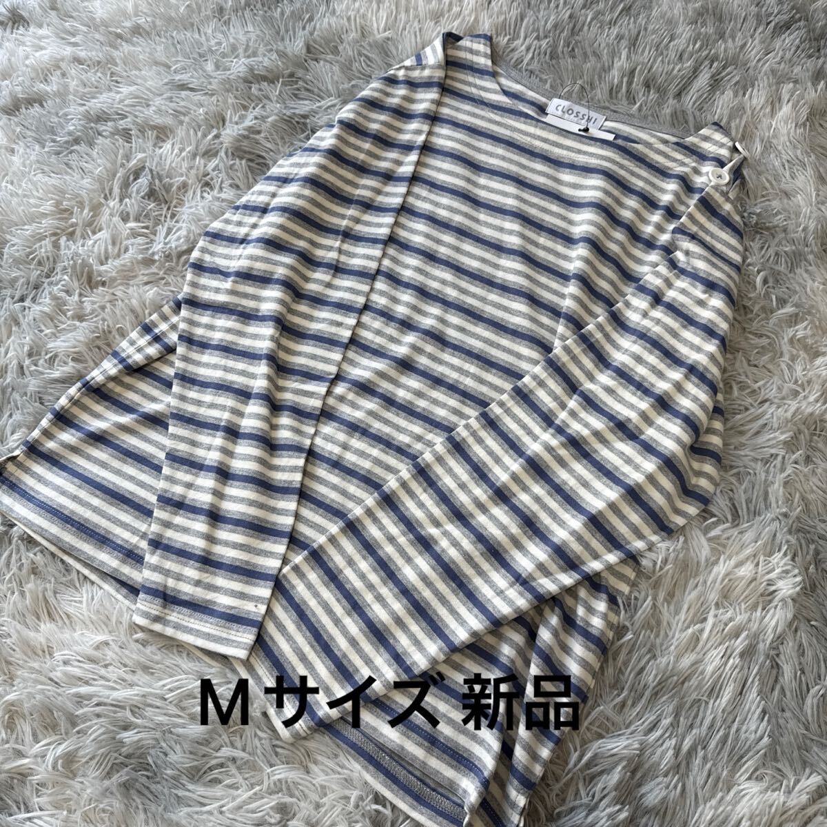 - 肩片側ボタンボーダー長袖Tシャツ白青グレーM★ゆうパケット配送可能★新品13