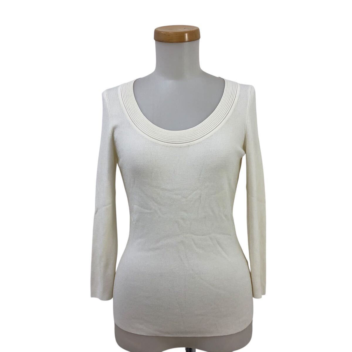> 10Nm330-84 EPOCA エポカ 七分袖 Uネック 七分袖 ニット セーター プルオーバー トップス ホワイト 白 レディース 40 日本製