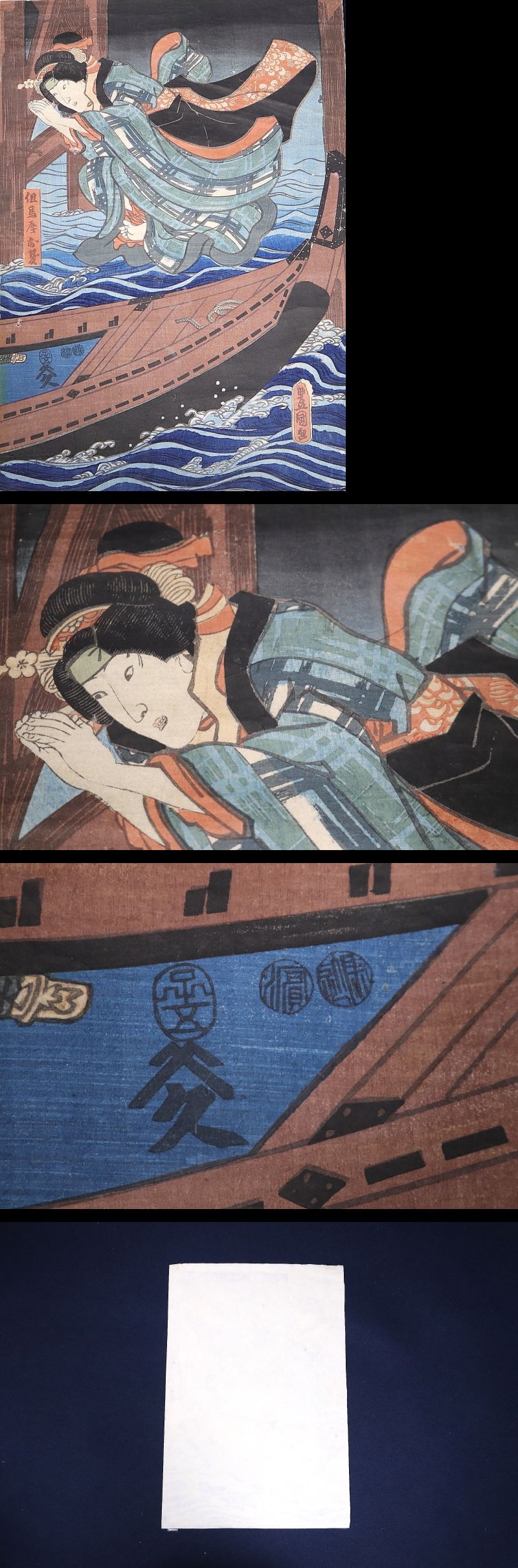 > 11048■【真作】歌川国貞(三代目豊国) 但馬屋お夏 木版 浮世絵 江戸後期の浮世絵師 マクリ