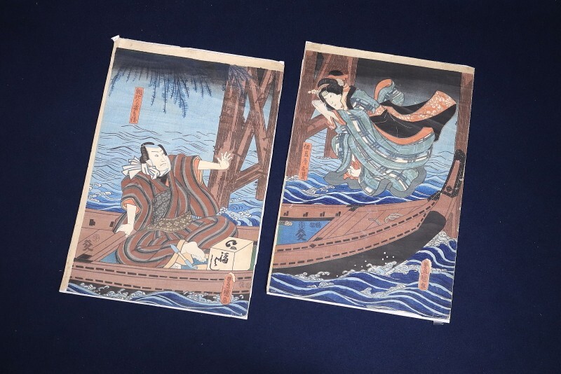 - 11048■【真作】歌川国貞(三代目豊国) 但馬屋お夏 木版 浮世絵 江戸後期の浮世絵師 マクリ