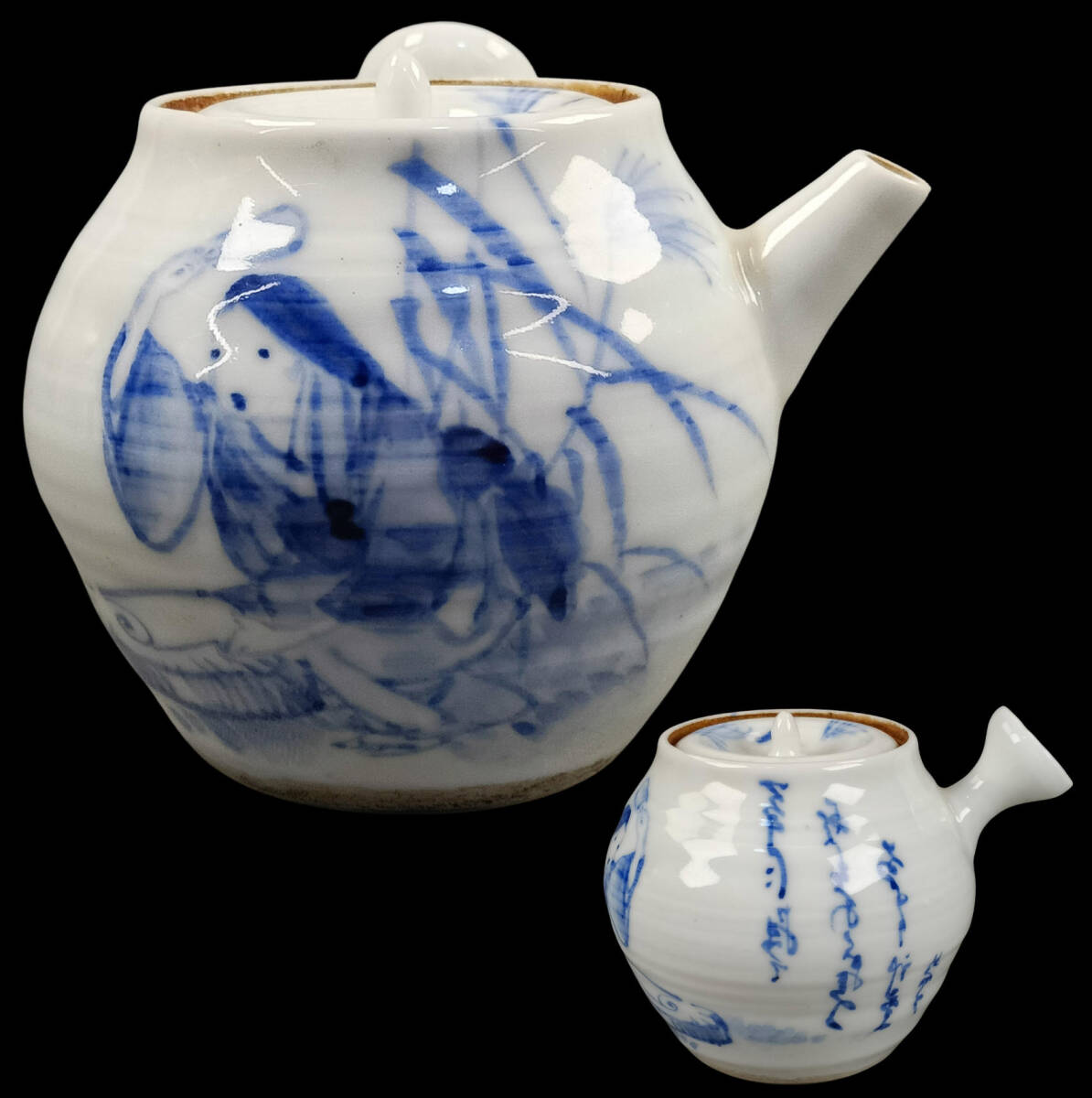 > 【偲】柴田如阿弥? 染付 煎茶急須 白磁 急須 横手急須 きぬた打ち文様 茶道具 煎茶道具 茶注 小振り 茶器 高さ約7.5㌢ 古道具 時代物 m-140