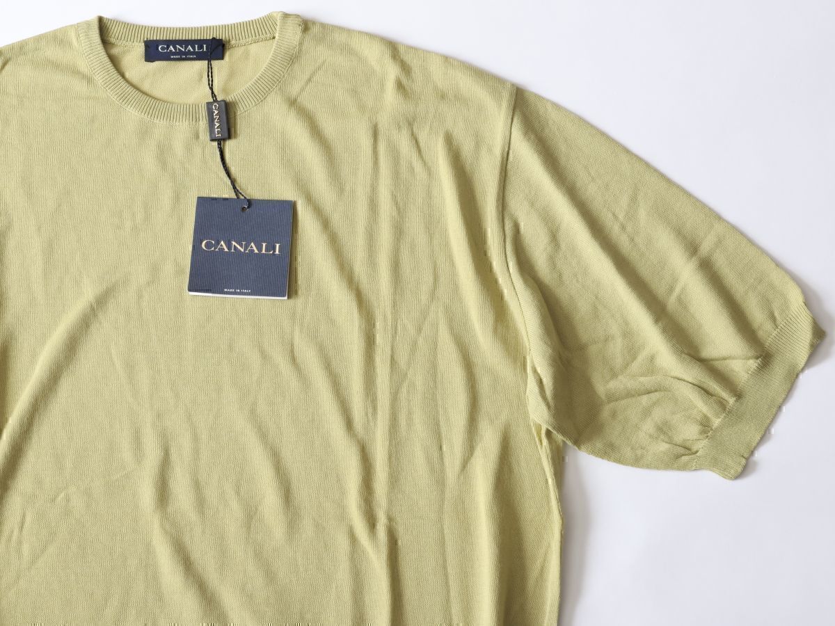 > ★正規品★CANALI カナーリ★ショートスリーブニットTシャツ★48【345014】ペールグリーン薄緑色【本物保証】重ね着★新品★オールシーズン
