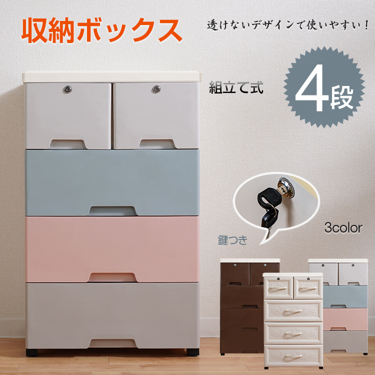- 未使用 収納ボックス 収納 4段 引き出し タンス チェスト 鍵つき 衣替え ランドリーチェスト 組み立て式 子供部屋 生活用品 ny422