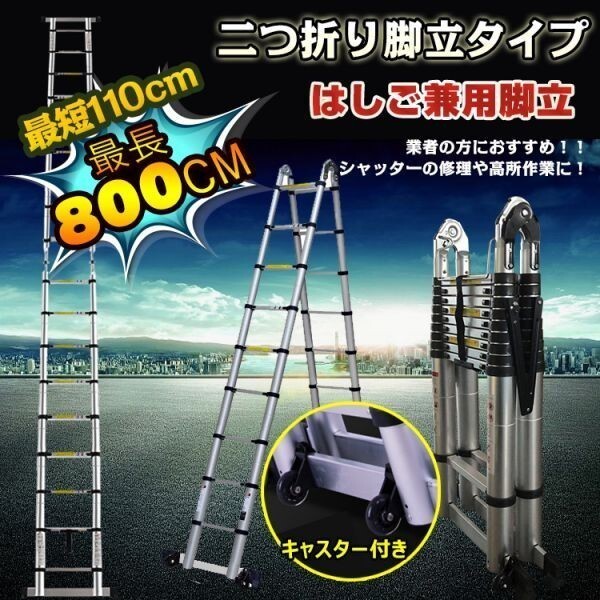 - はしご 伸縮 脚立 ハシゴ 伸縮梯子 はしご兼用脚立 8m 折りたたみ キャスター アルミ製 作業台 洗車台 高所作業 角度調整 ny006