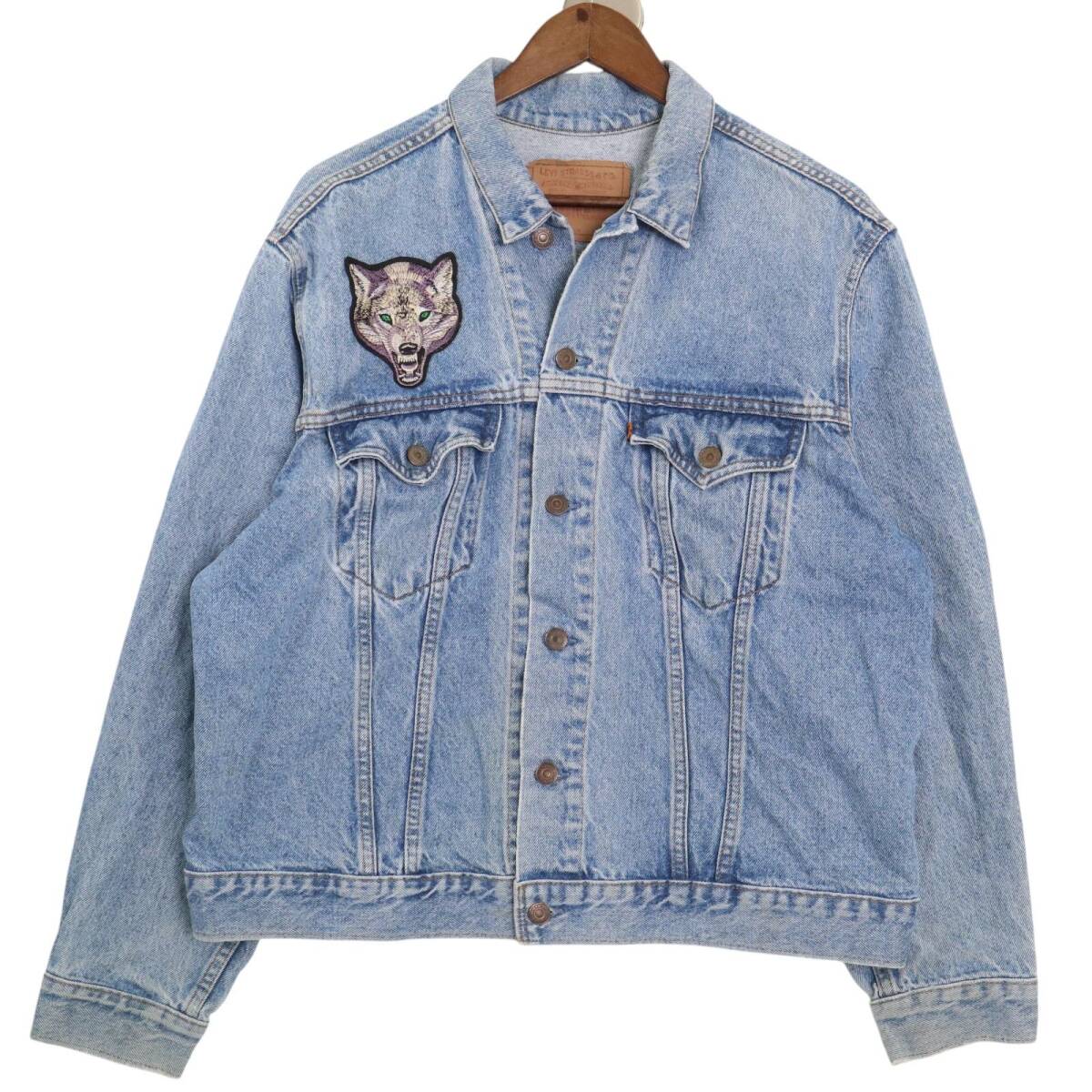 - 90年代 Levi's リーバイス 75505-0212 デニムジャケット ライトブルー ワッペン (メンズ 46) 中古 古着 A2938
