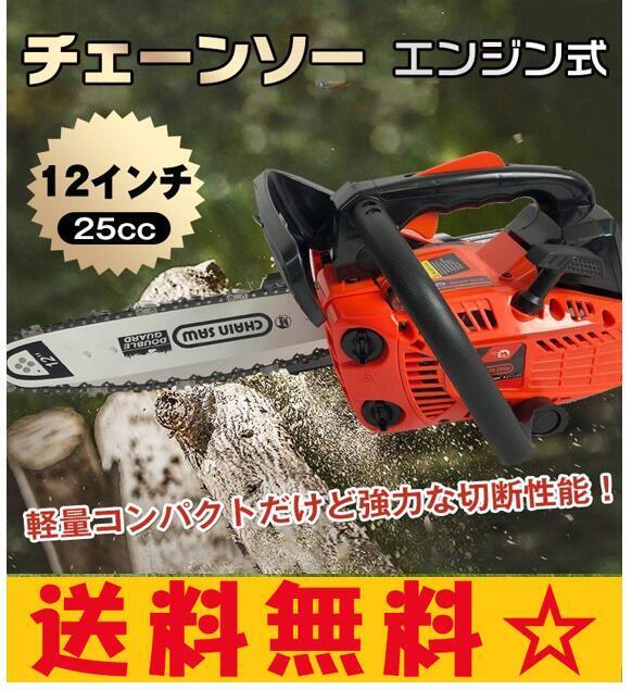 > 送料無料 正規品 チェーンソー エンジン式 排気量 25cc 12インチ オイル エンジン チェンソー 剪定 枝木 丸太 薪割り 切断工具 ny221