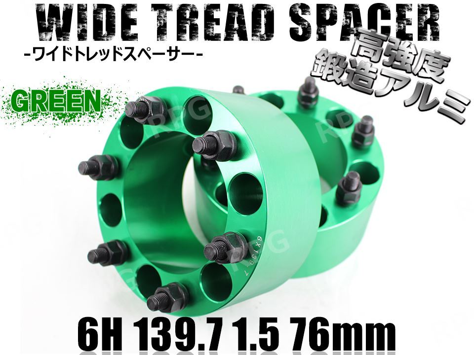 - FJクルーザー 15系 ワイトレ 6H 2枚組 PCD139.7-1.5 76mm ワイドトレッドスペーサー (緑)