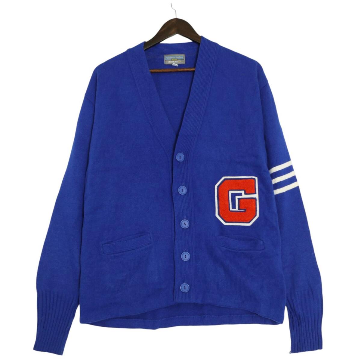 > 90年代 USA製 Andrew Rohan レタードニット アクリル カーディガン カレッジ ブルー (メンズ M) 中古 古着 A1431