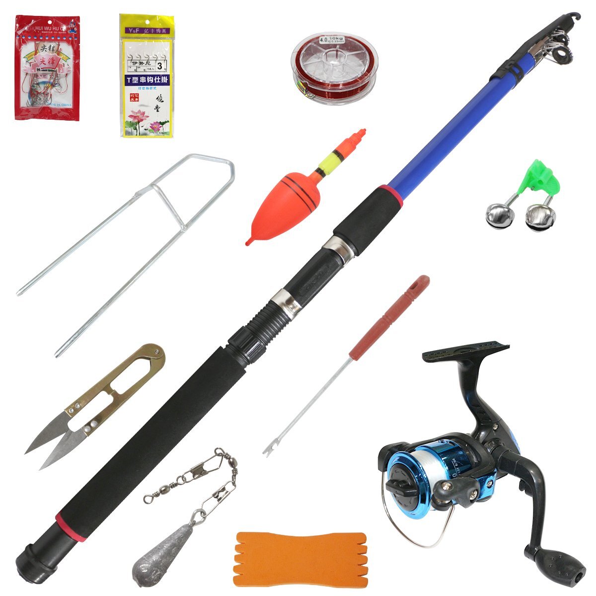 - 【新品即納】釣り竿セット 伸縮 2.6m 青 親子で川遊び 堤防釣りにも最適 ちょい釣りセット 一式 竿 ロッドリールコンボ