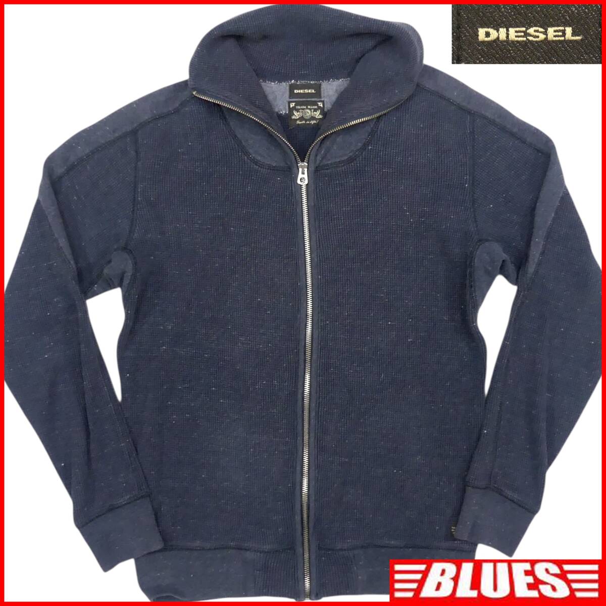 - 即決★DIESEL★メンズ M スウェット ディーゼル 紺 ネイビー ワッフル地 トレーナー カットソー 長袖 ジャケット ブルゾン