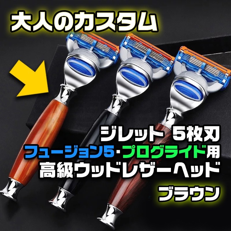 - ジレット 5枚刃 フュージョン5 プログライド 用 レザーヘッド ブラウン