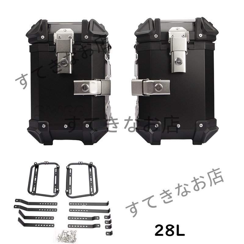 > サイドボックス バイク用サイドケース 左右セット(片側28L) サ イドキャリア付き ルミ製 パニア ケース 鍵/取付ネジ付き 防水 簡単脱着 黒