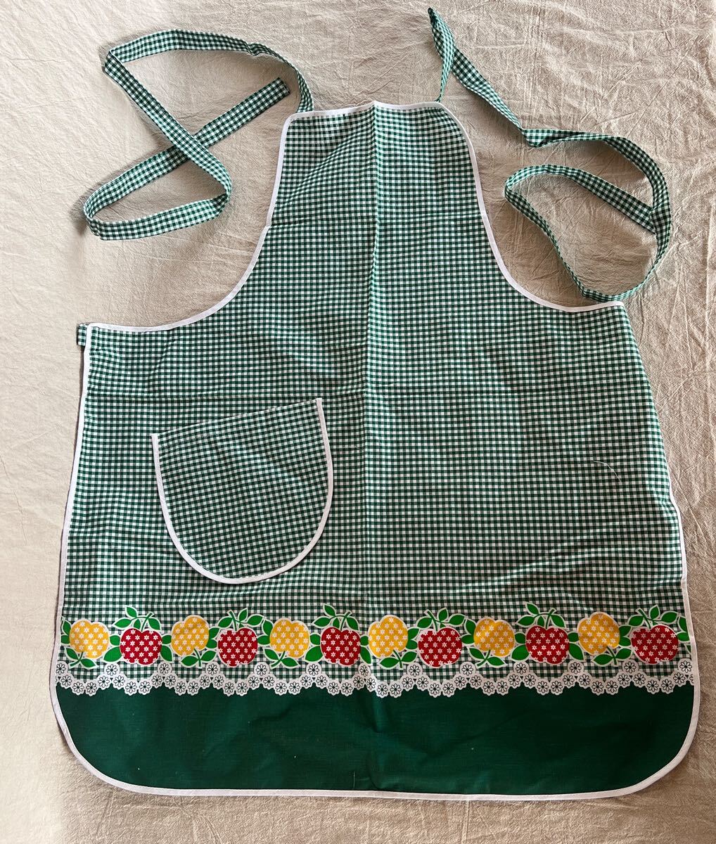 - T10-8-2 未使用!昭和レトロなエプロン ギンガムチェック りんご 子供 キッズ
