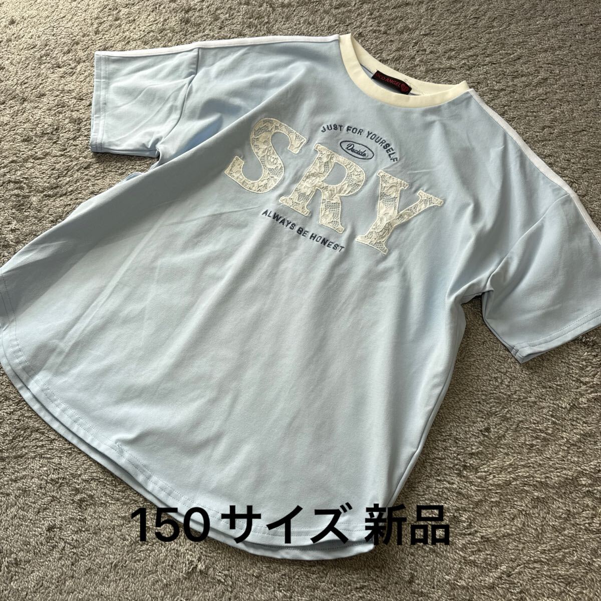 - こども服 レースロゴ袖ライン半袖Tシャツ水色150★ゆうパケット配送可能★新品14