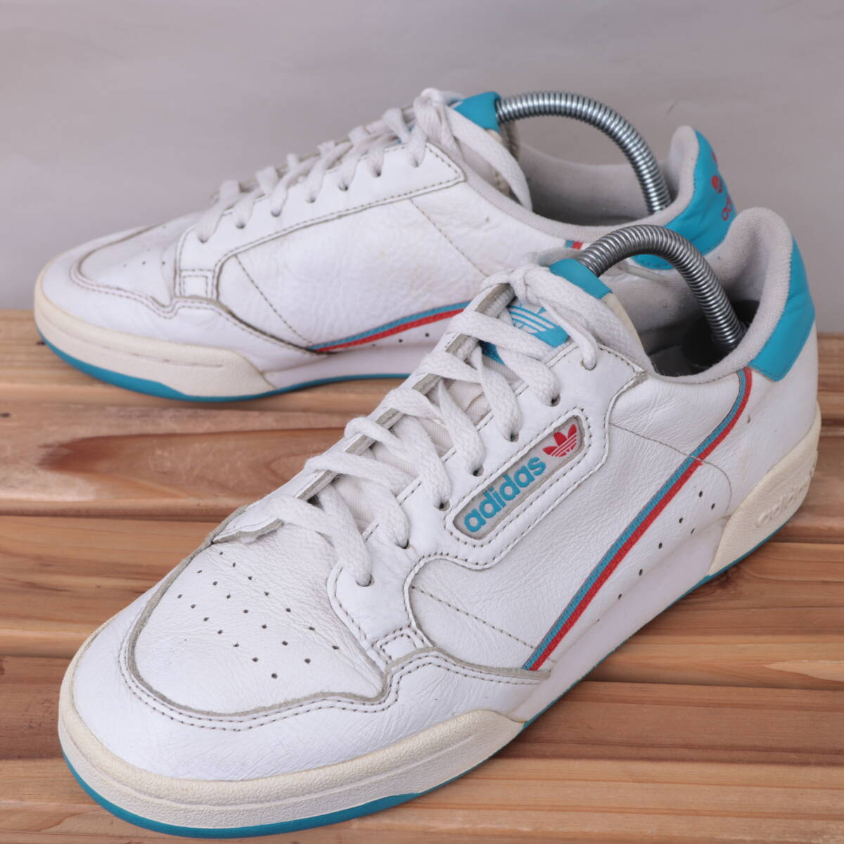 - z2572 アディダス コンチネンタル80 US8 1/2 26.5cm/白 ホワイト 水色 赤 adidas Continental 80 メンズ スニーカー 中古