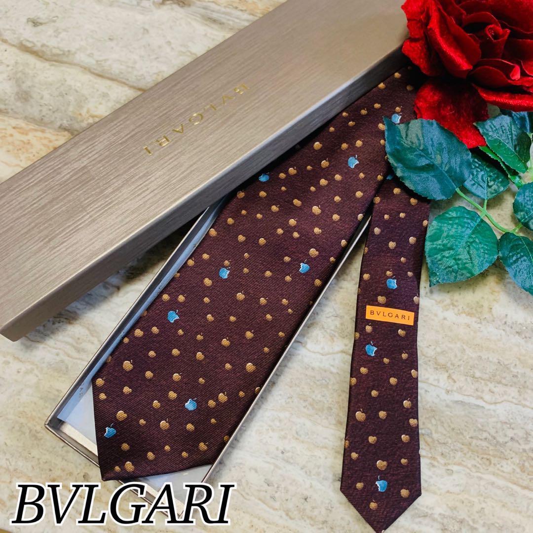 - N71 新品未使用 ブルガリ セッテピエゲ リンゴ総柄 ネクタイ メンズ