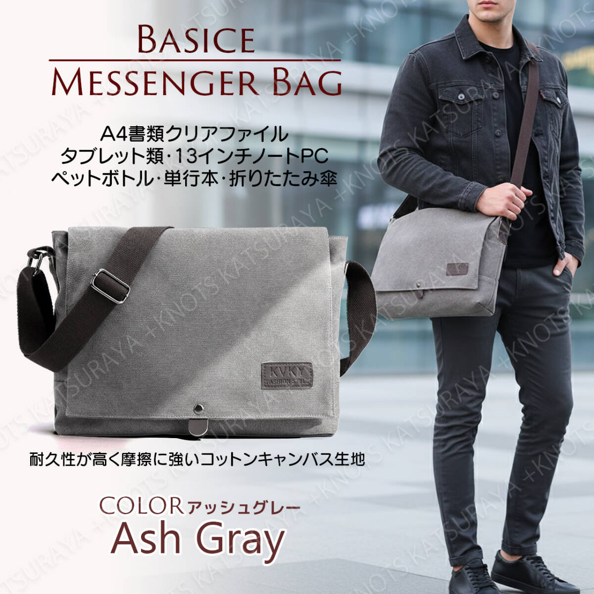 - メッセンジャーバッグ メンズ レディース★Aグレー★A4 ショルダーバッグ 斜めがけバッグ 大容量 キャンバスバッグ 帆布 シンプルa464