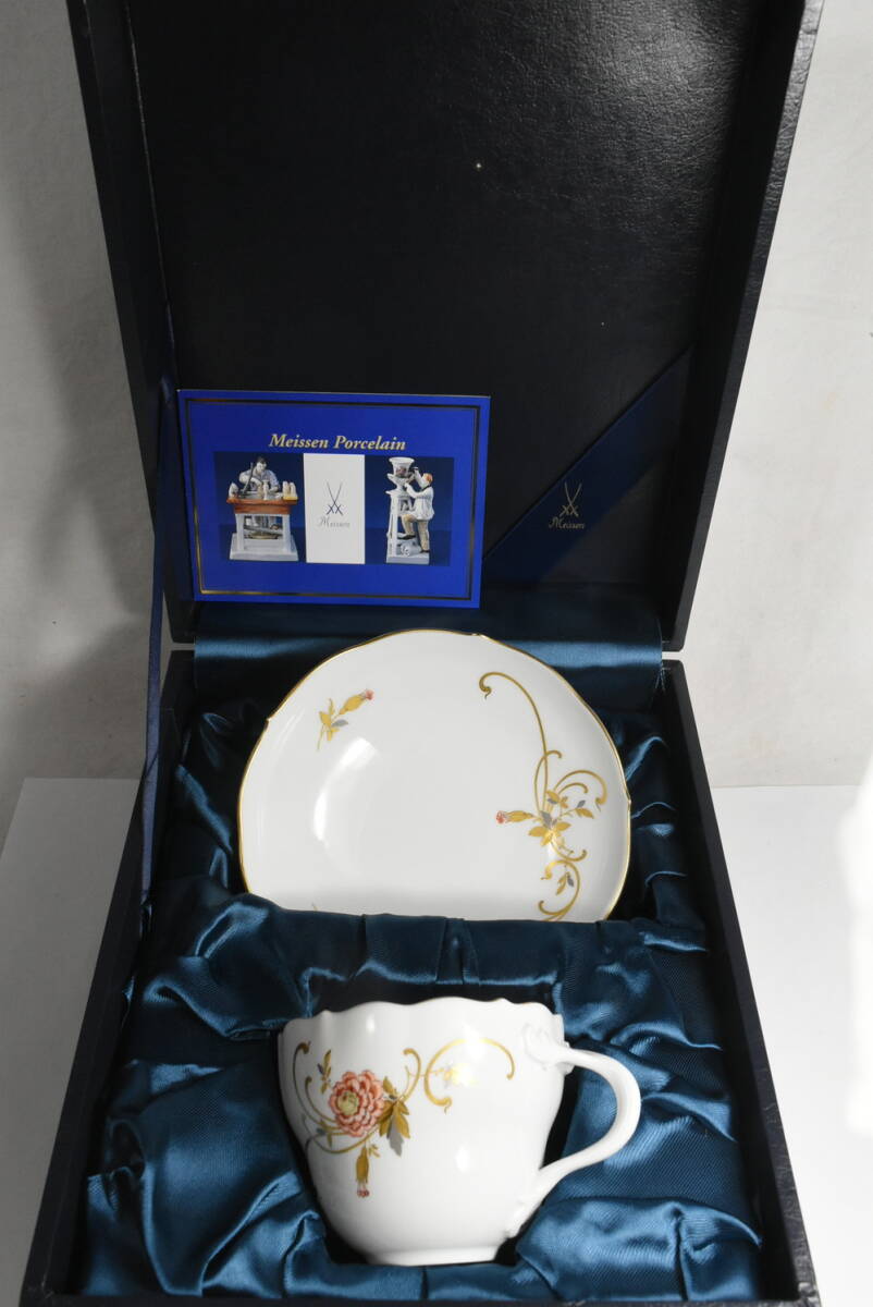 - ② Meissen マイセン 花柄 カップ&ソーサー 金彩 フラワー ブーケ 箱付き