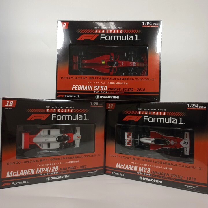 - 未開封 デアゴスティーニ 1/24 ビッグスケールF1コレクション 3点まとめ フェラーリ SF90/マクラーレン M23/MP4 2B ミニカー TG10-s005