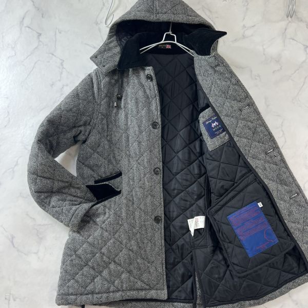 > 【L】美品オロビアンコ ムーン生地ヘリンボーンキルティングロングコート フード2wayコーデュロイ ロゴプレート メンズ Orobianco B1615