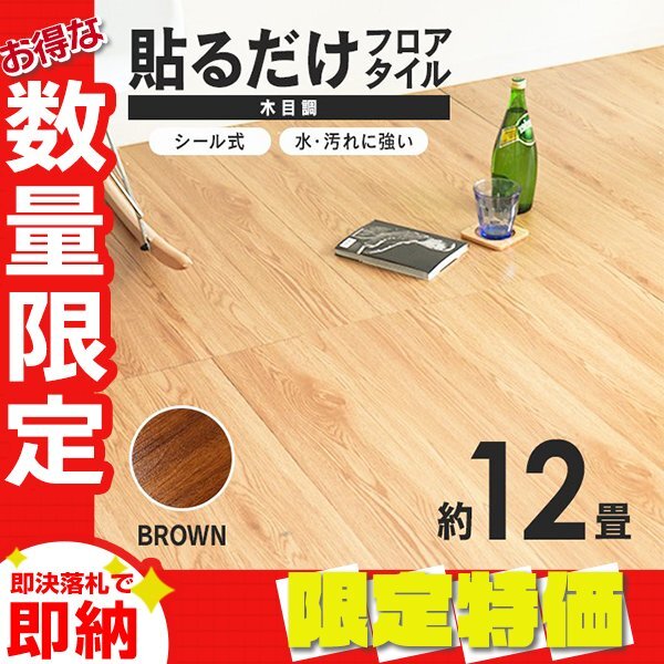 - 【限定セール】木目調 フロアタイル 約12畳 144枚セット 貼るだけ シール 接着剤不要 リノベーション 床材 シート DIY リフォーム ブラウン