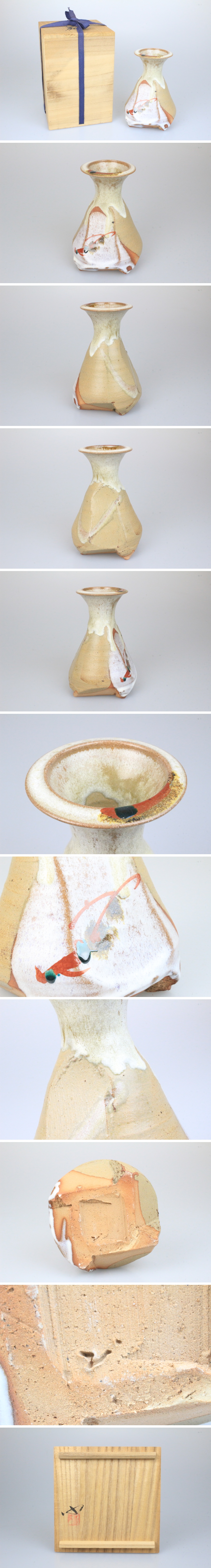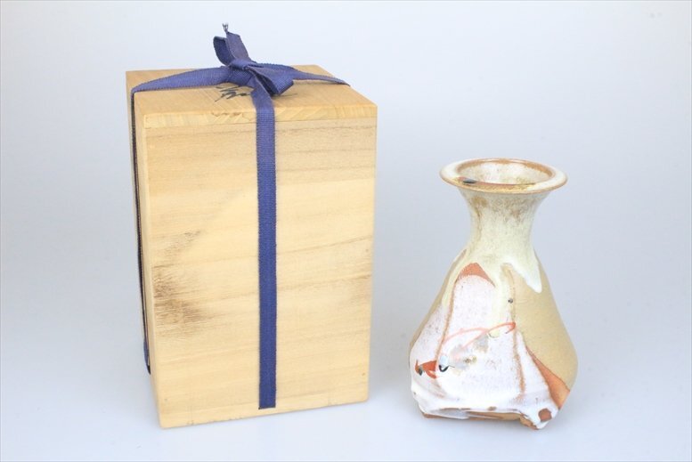 - 神勝寺 陶津 三代目 藤本明成 花瓶 花入 花生 花器 高さ:約18.5cm 華道具 茶道具 共箱 在銘 陶印 古美術品 骨董品 3727bzK
