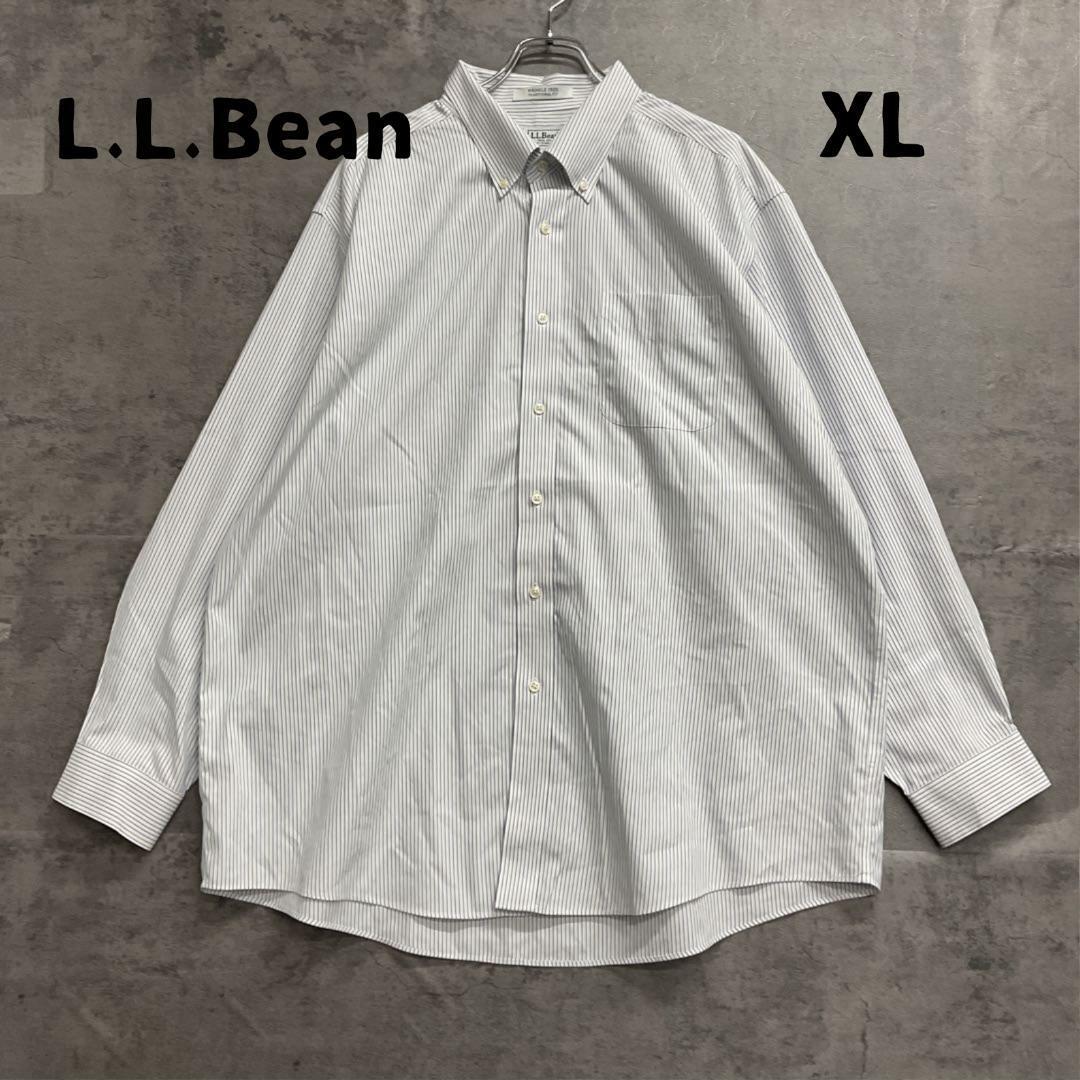 - エルエルビーン 白青ストライプ 長袖シャツ トラディショナルフィット【6041】