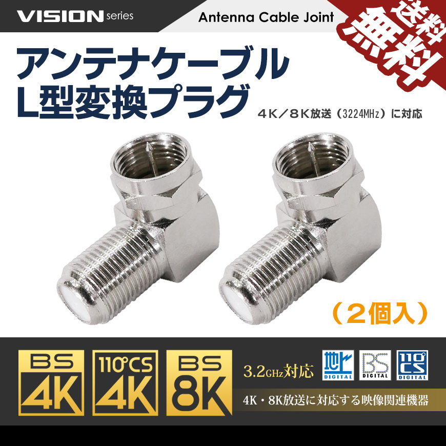 - アンテナケーブル L型変換プラグ 2個セット 331002 F型 接栓 4K8K対応 同軸ケーブル 地デジ BS CS TV ネコポス 送料無料