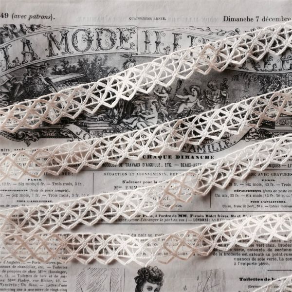- 残2 1900s France リネン 100x2c アルレッキーノ風菱形模様とレティチェラ的ボビンレース アンティーク フランス ハンドメイド ドール r4c