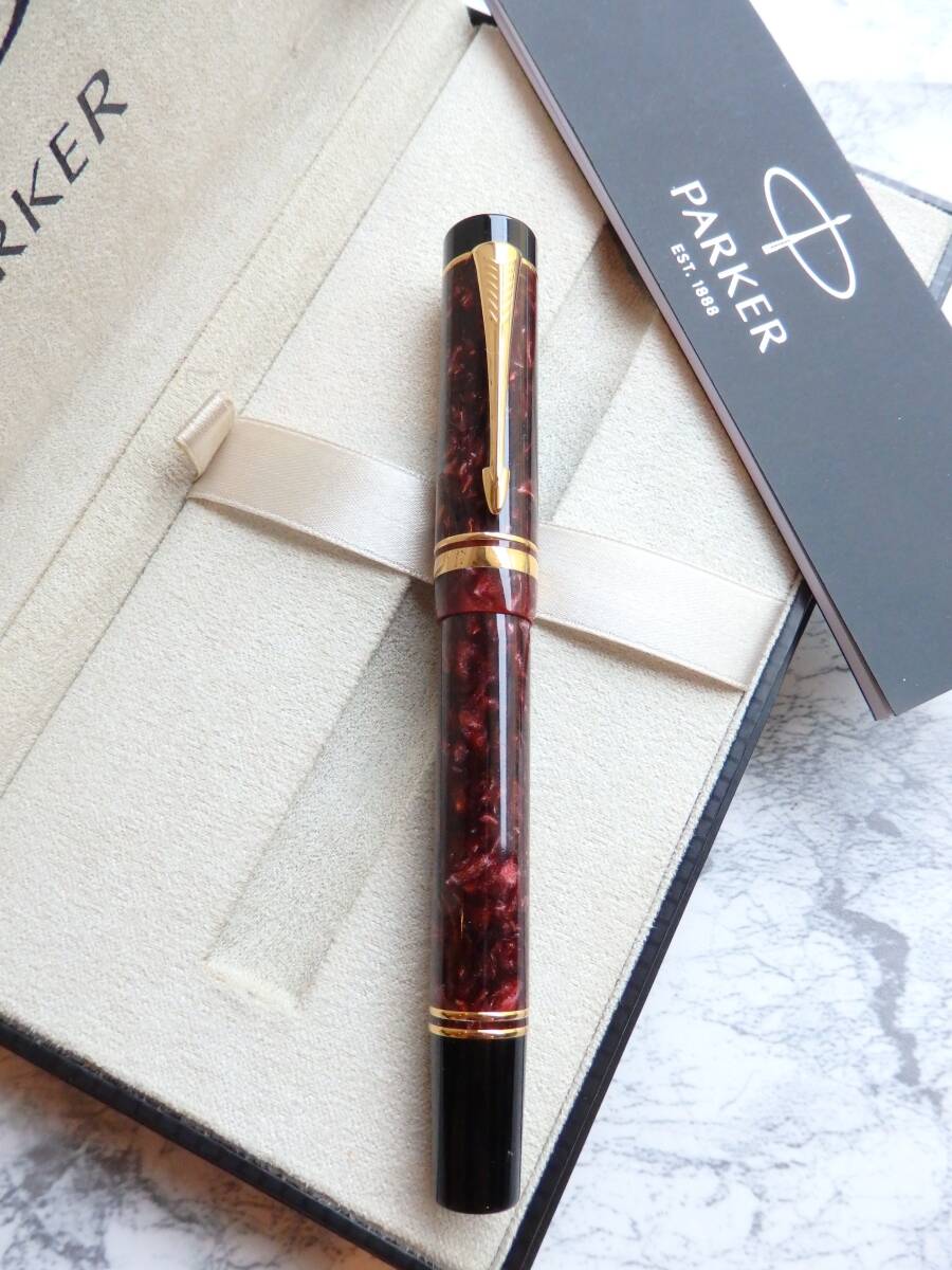> ◆【きれいな良品】【送料410円】パーカー デュオフォールド センテニアル レッドマーブル ペン先:18K750ソリッドゴールド M