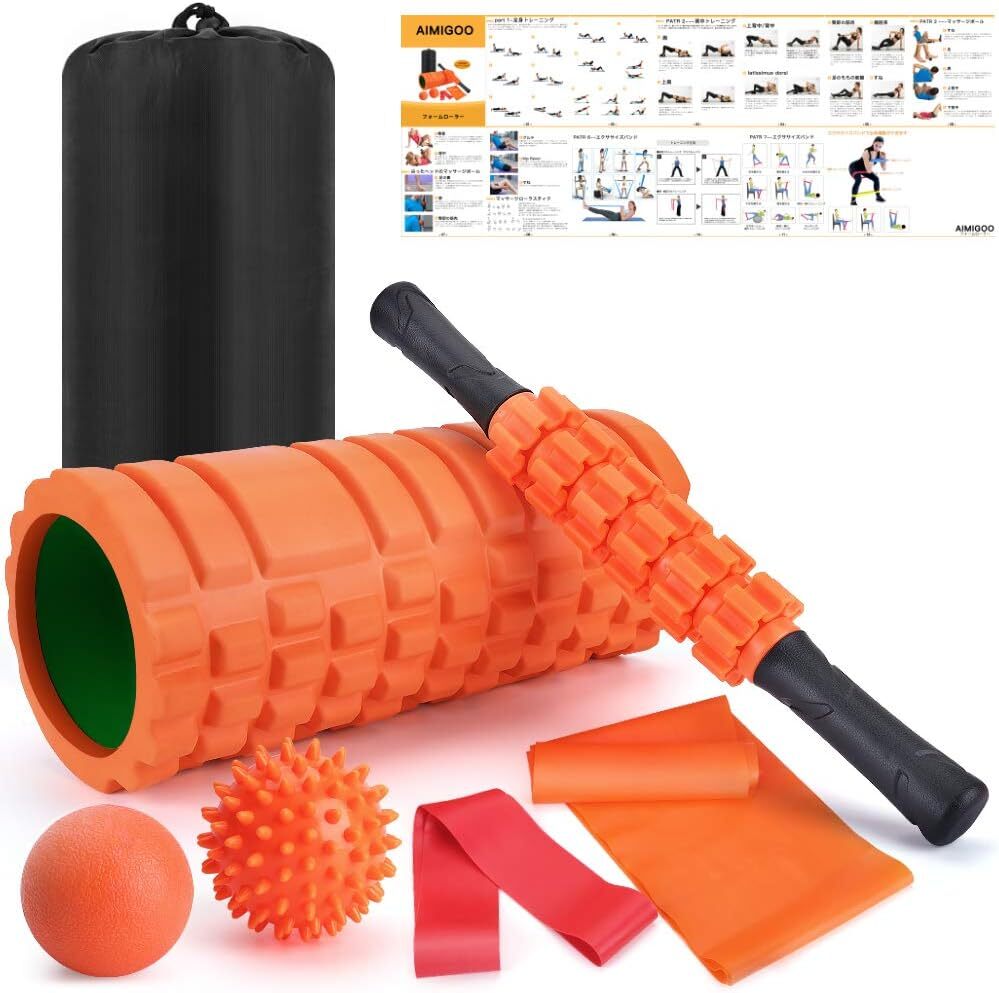 > オレンジ色 Rondofy フォームローラー 筋膜リリース ストレッチ スティック ヨガポール トリガーポイント マッサージボール 7点