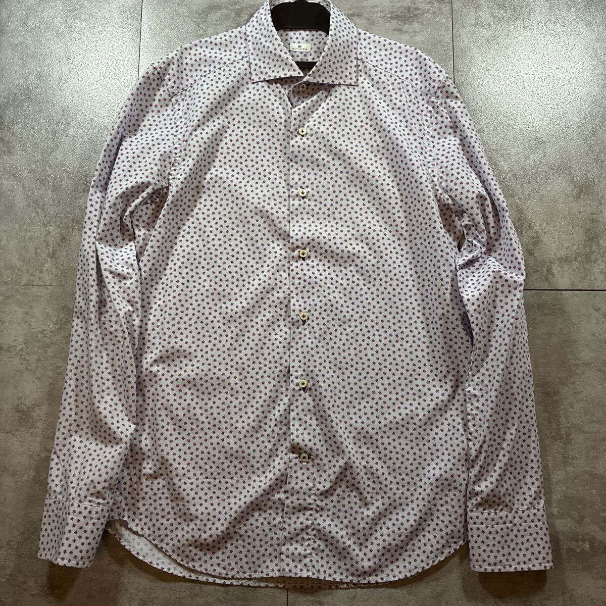 > 【美品・L相当】SONRISA ソンリーサ 長袖シャツ 花柄 フラワープリント ピンク レッド ブルー メンズ イタリア製 40 15 ドレスシャツ 総柄