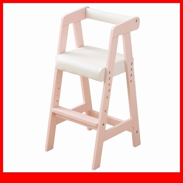 > ベビー キッズ★ハイタイプ キッズチェア 椅子/3段階高さ調整 天然木 PVC座面 コンパクト 軽量 お手入れ簡単/セレーヌピンク/a5