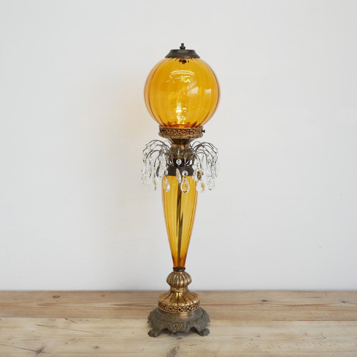 > 1960's 70's アメリカ アンバーガラス製 テーブルランプ / ヴィンテージ アンティーク照明 シャンデリアパーツ付き #510-50-121-314