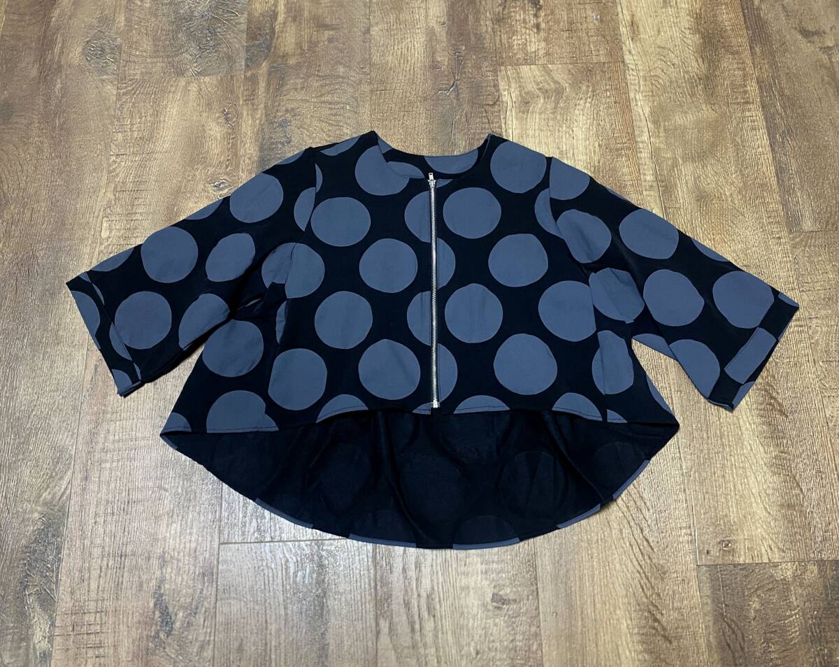 - 福祉バザー CALL★ドット柄7分袖クールなジャケット/グレー×黒M~L