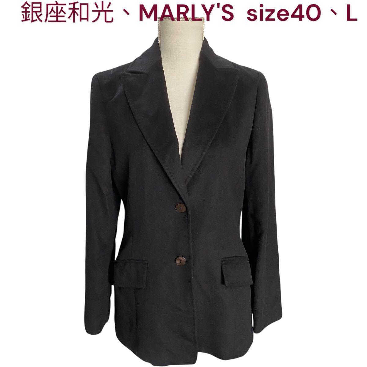 > 美品 銀座和光 マルリス ウール、アンゴラ ジャケット 黒、ブラック 40、L テーラードジャケット wako MARLY'S ワコウ 11号