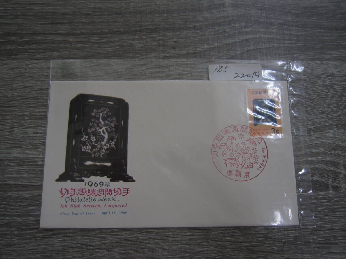 > (記念印有/初日カバー/小型説明書付) 琉球郵便 1969年 切手趣味週間切手 Philatelie Week 螺鈿硯 郵趣 コレクション